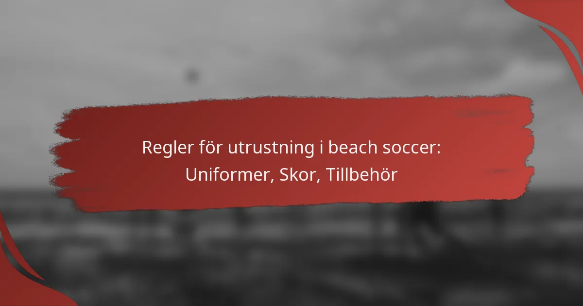 Utrustningen för beach soccer regleras av specifika regler som omfattar uniformer, skor och tillbehör för att säkerställa ett professionellt utseende och spelarsäkerhet. Uniformer måste följa regler angående design och varumärke, medan skoval kan variera mellan specialiserade skor och barfota spel. Dessutom får spelare bära vissa tillbehör som förbättrar prestationen, förutsatt att de uppfyller säkerhetsstandarder för att upprätthålla rättvist spel.